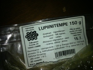 However, like many weeds, it turns out that lupins are edible. Their furry pea like pods bely their relation to legumes. According to Wikipedia, common varieties may need soaking in salt water. But what really inspired this post is my glee at discovering locally made Finnish lupin tempeh! An exciting alternative to soy.